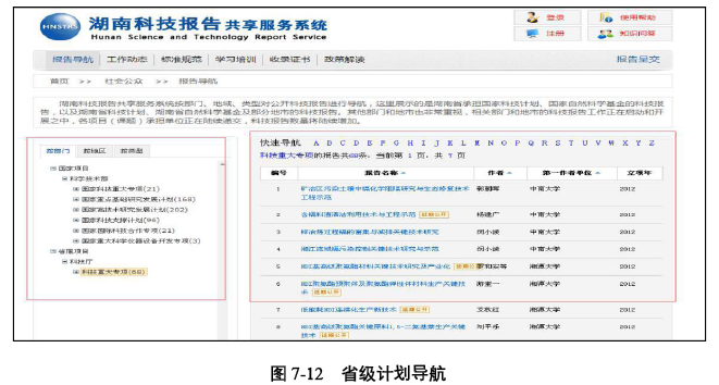 湖南科技报告共享服务系统首页如图7-1 所示。